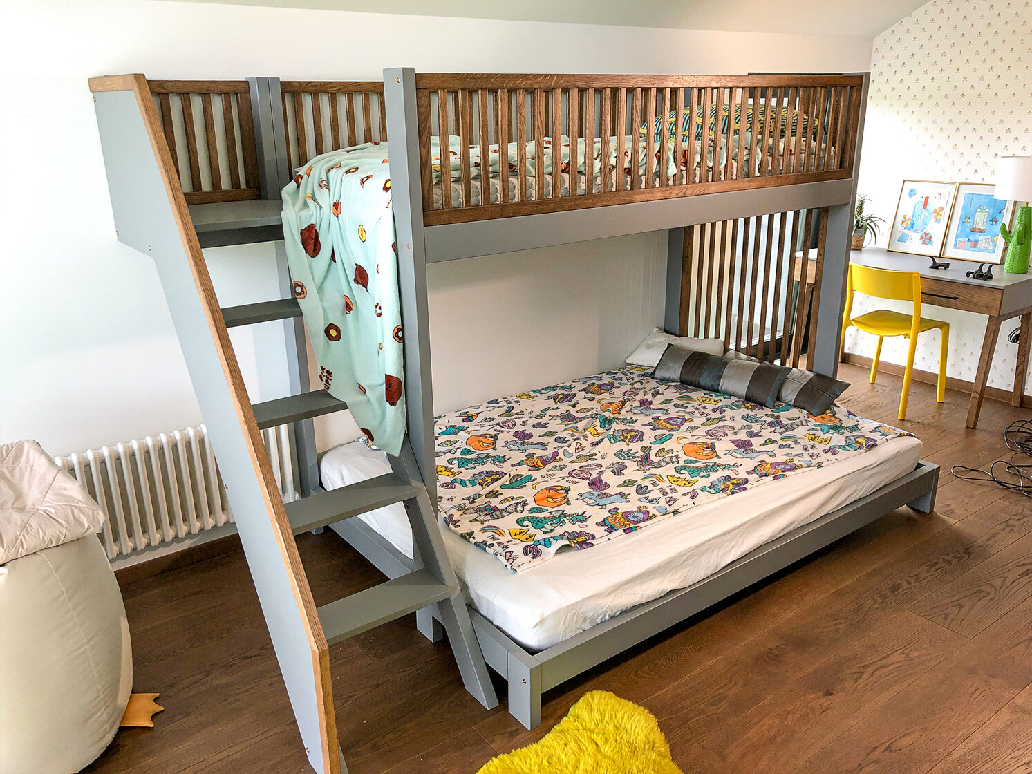 Divstāvīga bērnu gulta , rakstāmgalds un skapis